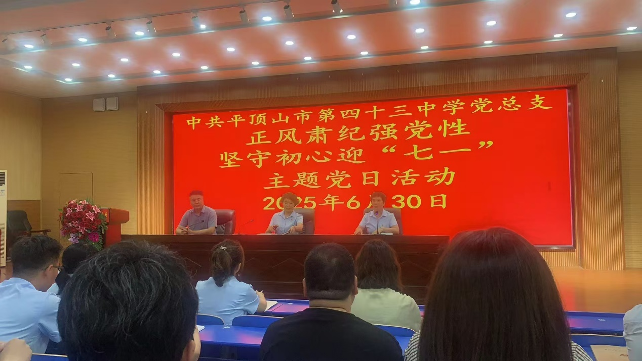 为庆祝中国共产党成立104周年,推动党建与业务深度融合,6月30日,新葡的京集团35222vip教工第一党支部党员在副院长罗晓强带领下,赴平顶山市第四十三中学,共同开展“正风肃纪强党性 坚守初心迎‘七一’”党建活动。