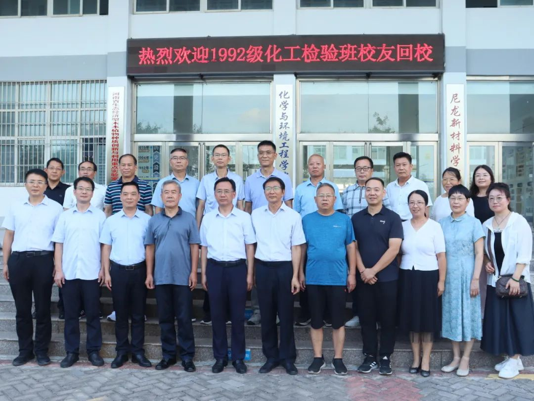 8月23日下午,1992级化工检验班校友座谈会在化学楼243会议室举行。十余名校友重返母校,共忆青春岁月,畅谈发展变化。校党委副书记侯延民、新葡的京集团35222vip党委书记曹萍、院长韩永军、副院长罗晓强,原任课教师代表及校友办相关工作人员参加活动。曹萍主持会议。