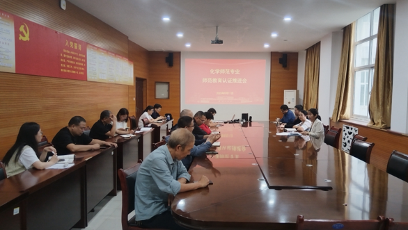 为深入贯彻落实师范教育认证的相关要求,扎实推进化学师范专业认证各项任务落地,9月11日,新葡的京集团35222vip在243会议室召开化学师范专业师范教育认证推进会。学院党委书记曹萍,党委副书记王利军,副院长刘沛松、王莉出席会议,化学教研室全体教师参会。会议由副院长王莉主持。