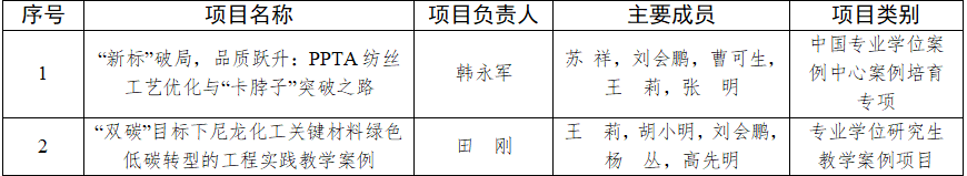 近日,河南省教育厅发布《关于公布2026年河南省研究生教育改革与质量提升工程项目(案例项目)名单的通知》(教办研〔2025〕257号),新葡的京集团35222vip韩永军教授团队申报的《“新标”破局,品质跃升:PPTA纺丝工艺优化与“卡脖子”技术突破之路》项目成功获批2026年河南省中国专业学位案例中心案例培育专项项目,田刚副教授团队申报的《“双碳”目标下尼龙化工关键材料绿色低碳转型的工程实践教学案例》项目成功获批2026年河南省专业学位研究生教学案例项目。